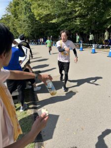 キャプテンのMさんも必死の形相でタスキを繋ぎます。